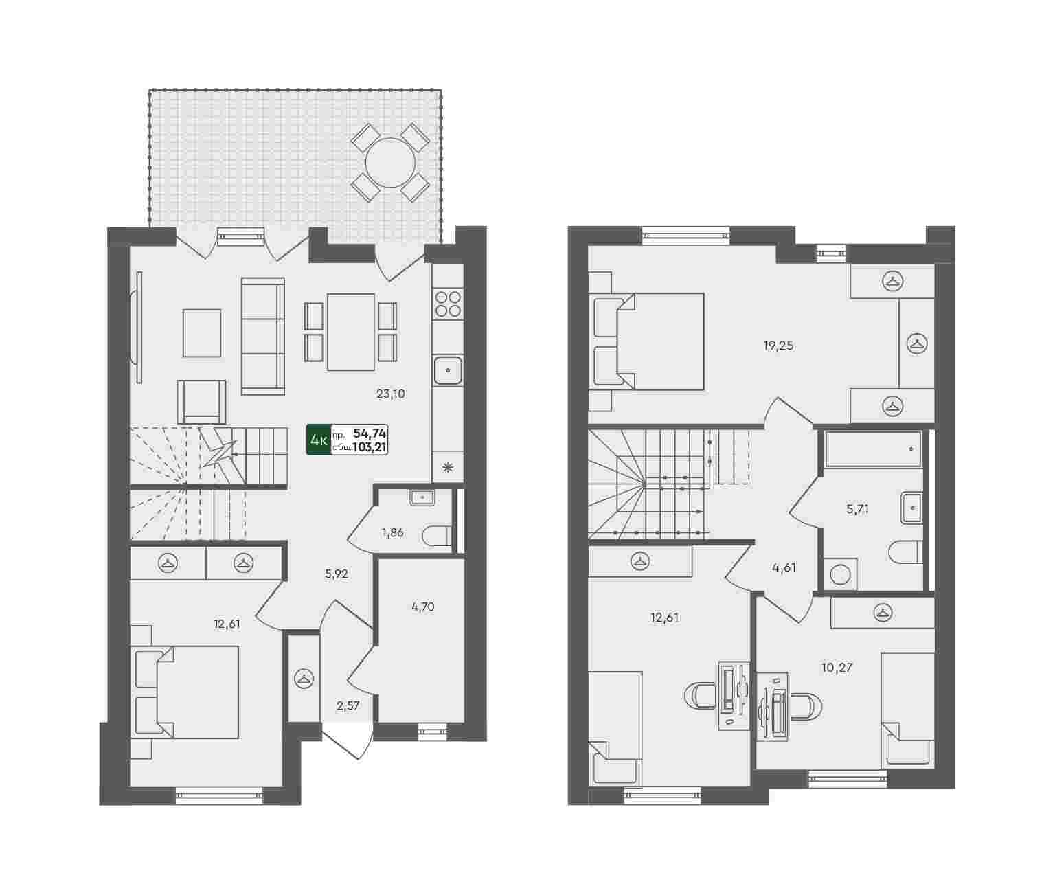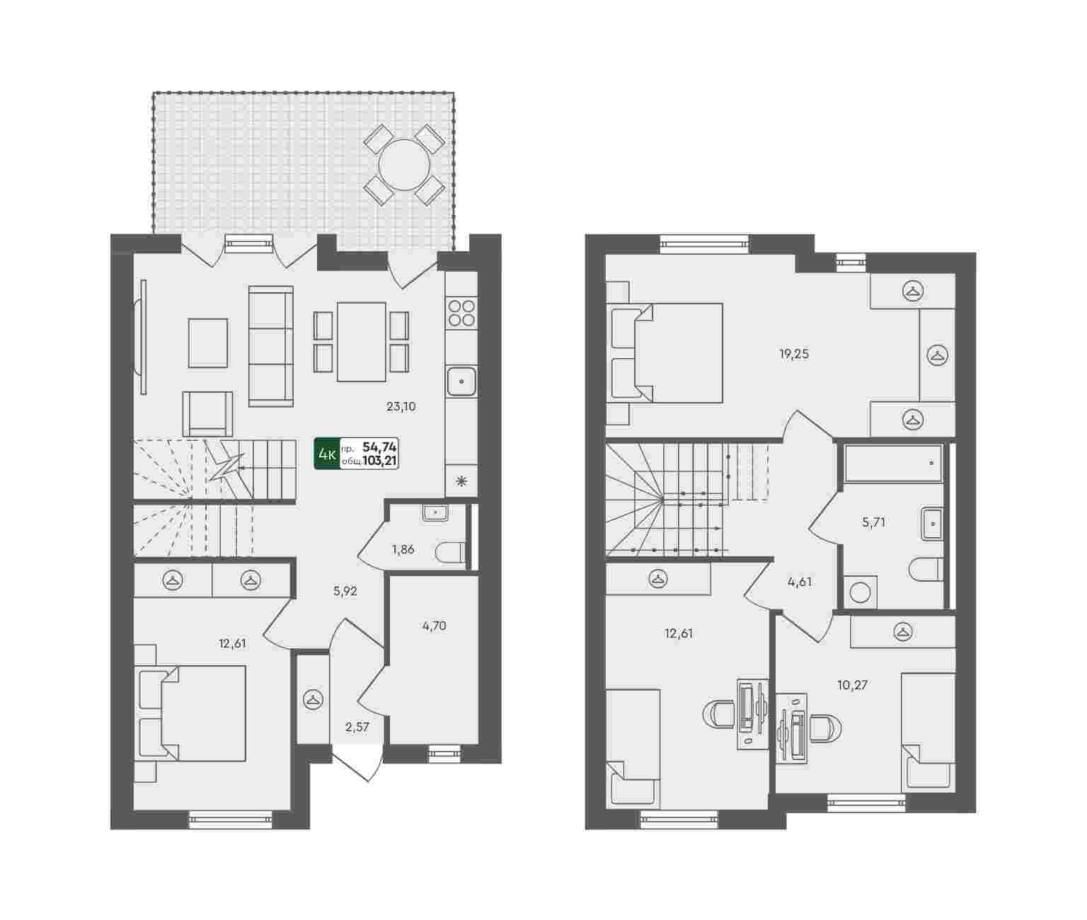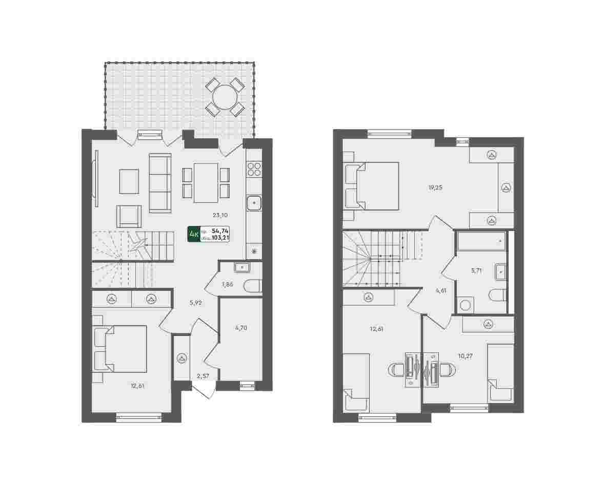 - 4-комнатный таунхаус, 103.21м²
